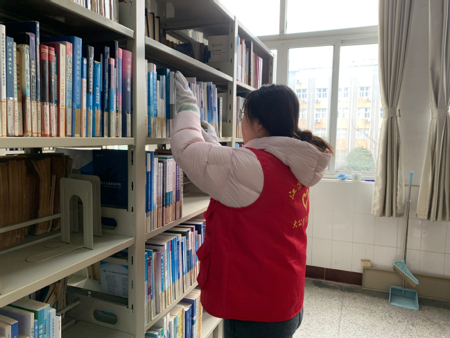 活动当天,志愿者们在图书馆工作人员的指导下迅速投入工作。大家分工协作、细致耐心,认真核对图书编号、分拣错架书籍、擦拭书架积尘、将散落图书一一归位。面对数量庞大、分类繁杂的书籍,同学们没有丝毫懈怠,彼此配合默契,以严谨细致的态度完成每一道工序,让书架重归整齐、图书各归其位。汗水与书香交织,行动与精神共鸣,志愿者们用实际行动诠释了新时代雷锋精神的深刻内涵。